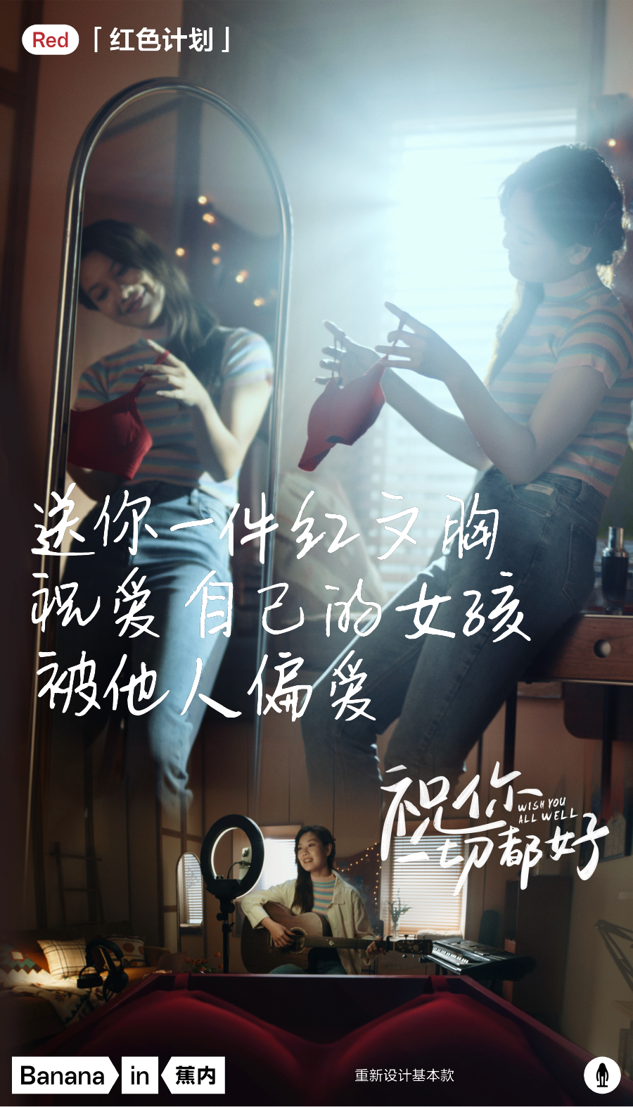 从中我们还能发现蕉内的“小巧思”,不仅在小红书此次social活动的设计上与《祝你一切都好》TVC短片在对准普通人视角上形成了呼应,更可以发现用户们晒出的蕉内红色上身图其实和TVC里一个个人物收到红色计划礼盒也进行了一一呼应。这样的品牌举动可谓暖心力十足。