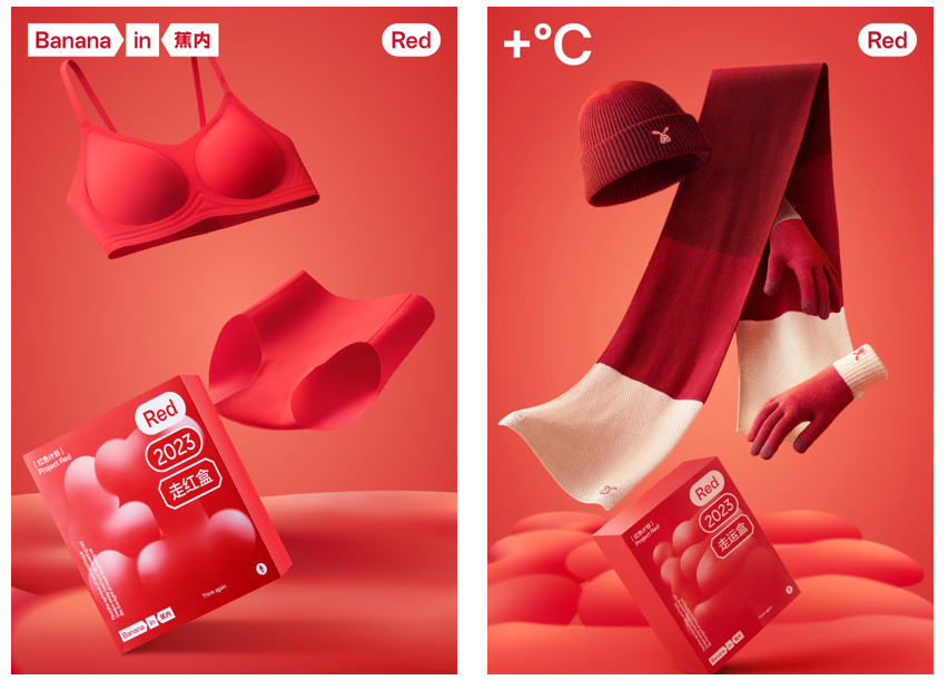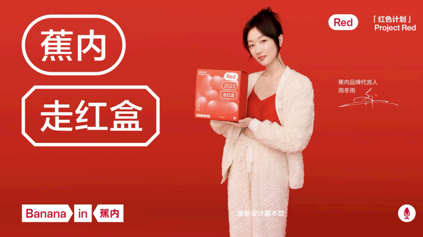 随着时间迈入一月,兔年春节的年味越来越浓!蕉内2023「红色计划」再次开启,不仅邀请品牌代言人周冬雨“讲述”了一支《祝你一切都好》的温情故事,将品牌的红色祝福上升为2023年全民的心愿;更联合中国当代艺术家,重新设计新年红色基本款,并且蕉内全品类还推出红色特别款以及新年礼盒“走红盒”、“走运盒”,打造品牌新春声浪之余,也让新年红色文化继续传承,承担起一个新国货品牌的自觉与担当。