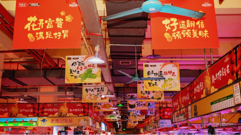 在你的印象中,菜市场是怎样的?脏乱、拥挤、昏暗?一改往日大家对菜市场的陈旧印象,胡姬花“真香开运菜市场”兼顾烟火气和时尚感,曾经非常普通的过道,被胡姬花改造成“开运好话局”,悬挂的开运吊幅,都配有特定的菜式和特别的开运文案。