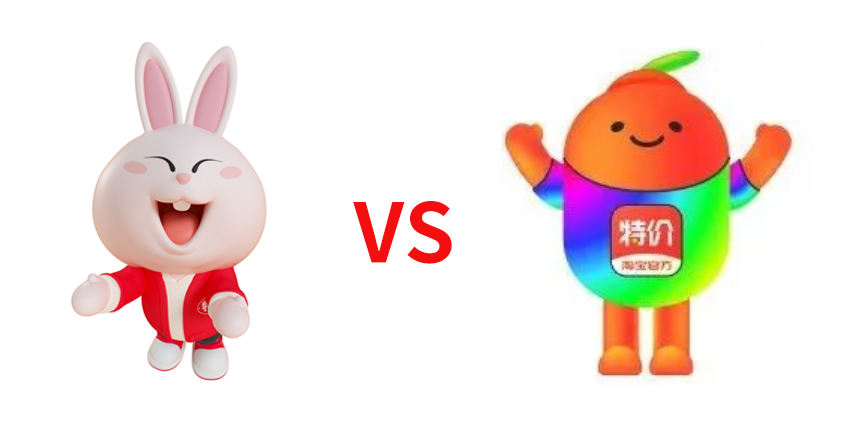 在配色上,由原本的淘宝标志性橘红+明黄,变成了粉色调。配上“萝卜特”兔子形象,更加可爱,有亲和力。