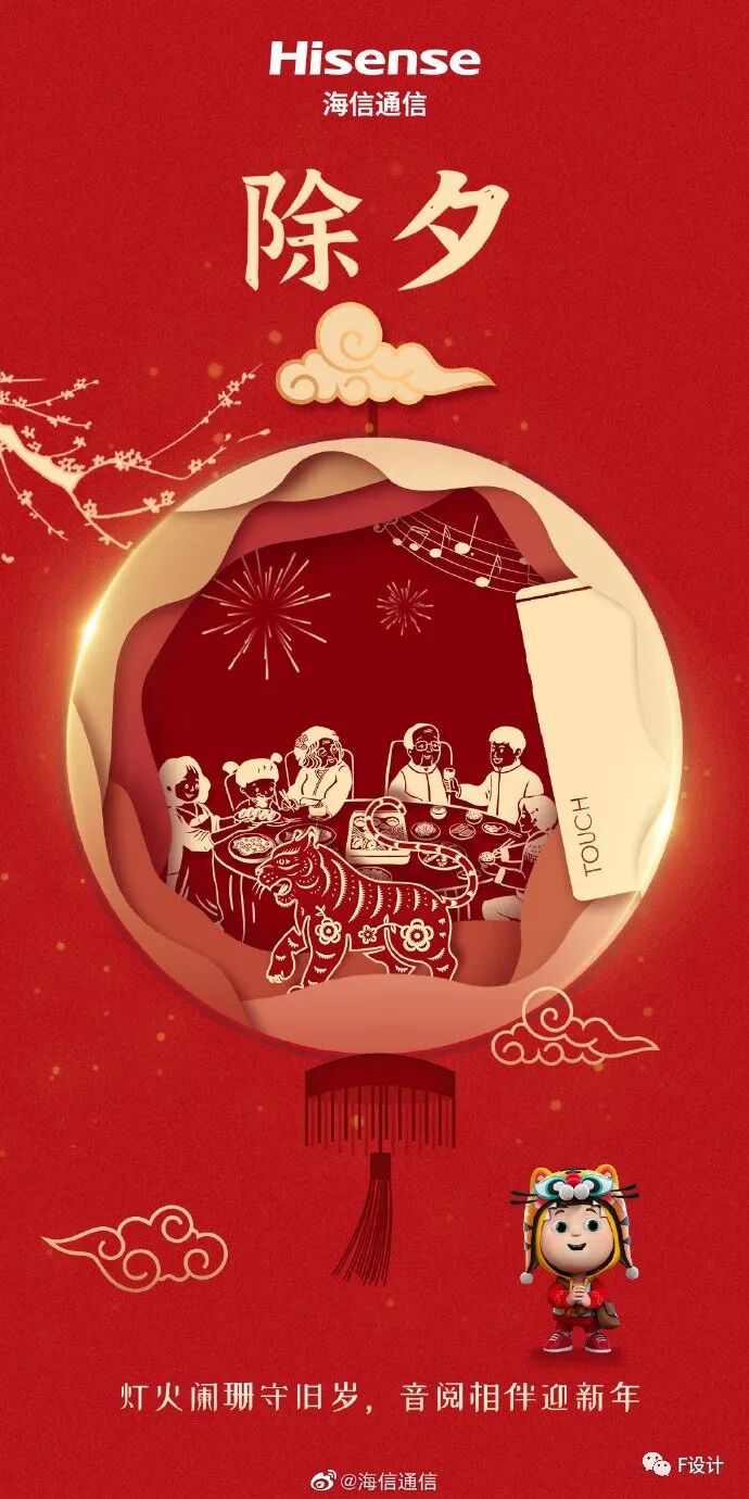 除夕:爆竹声中一岁除,和挂念着的人相守在一起,便有光,小米之家祝大家#除夕快乐# 灯火阑珊守旧岁,音阅相伴迎新年;海信通信祝你新年虎虎生威!年夜饭就得家人团聚在一起,举杯停著尽是人间烟火味,新的一年美好愿望一个都不能少,愿你新的一年喜事成双,美好如约[许愿虎]除夕夜,承前启后,去故迎新,吃年饭,看春晚,一起辞旧迎新,共庆团圆!小狗祝大家#除夕快乐#[福气虎]守岁团圆夜。德国马牌轮胎祝大家新年事事都如意,虎虎有生气!春归寒意除旧岁,人间至美是今宵。神州租车祝大家新的一年,龙骧虎步,出行无忧。岁岁常欢愉 年年皆胜意;日子如熹光 温柔又安详。一汽丰田全新#卡罗拉锐放#祝大家除夕安康!更大空间,承载虎年更多爱与期待!????寅虎新年 恭贺新禧;捷豹路虎祝大家:虎年纳福 吉祥如意今日宜,迎新年;寻虎迎新,踏雪而归;寻找身边的虎气,新年一虎百应团圆时刻,万喜万般宜;牛奔虎跃,红途今胜昔。除夕之夜,红旗恭祝您虎年大吉