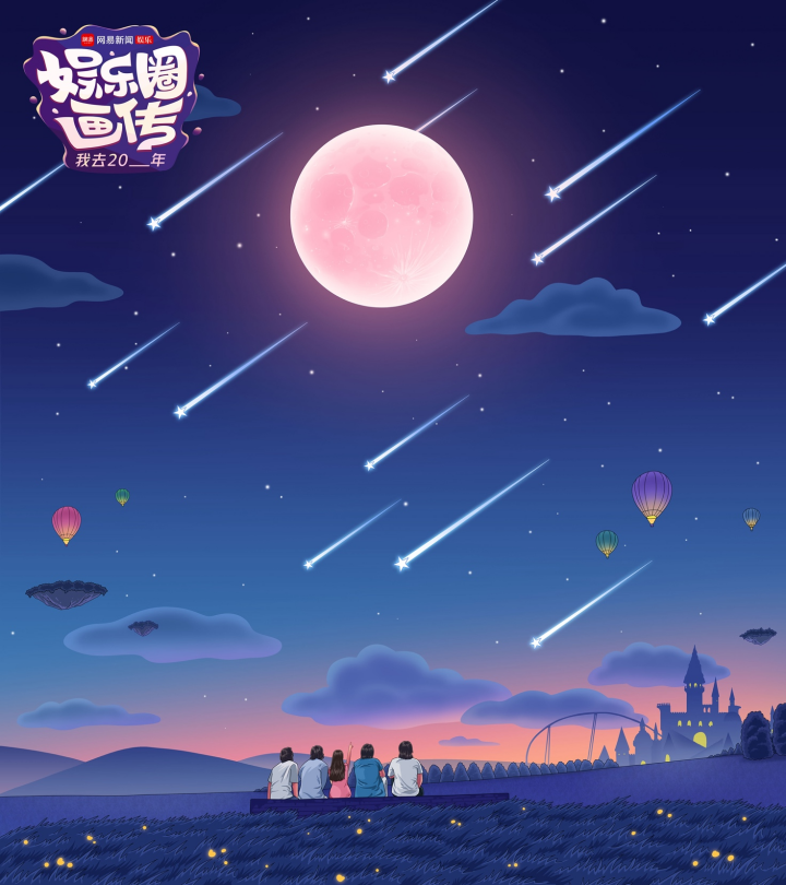 邻近结尾处,随着歌曲《流星雨》的响起,夜空中划过闪亮的流星,粉色的月亮映染了远处的天空,有青春、有梦想、有祝愿,还有未来。