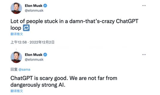 连马斯克都忍不住感叹:“ChatGPT好得吓人,我们离强大到危险的人工智能不远了。”