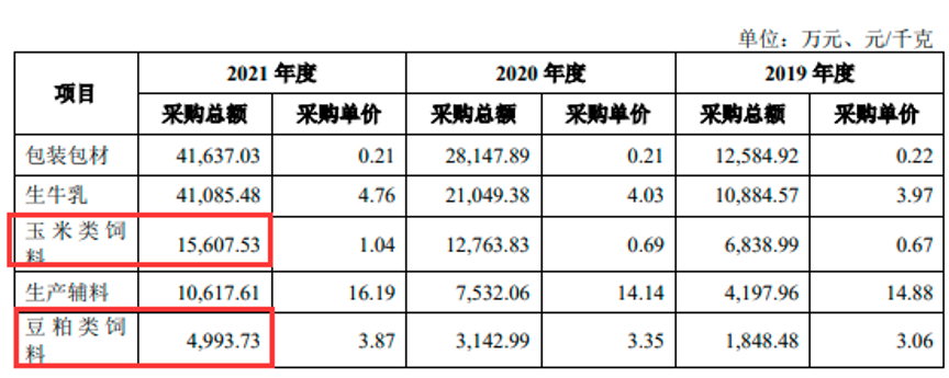 其次,每头牛日均伙食费也严重达不到宣传的水平。认养一头牛牧场使用的饲料均为外部采购,2021年公司玉米公司玉米类饲料采购总额为1.56亿元,豆粕类饲料采购总额4993.73万元。