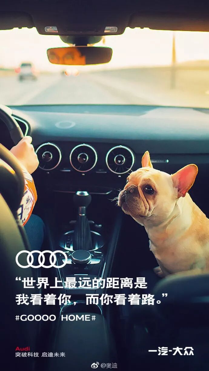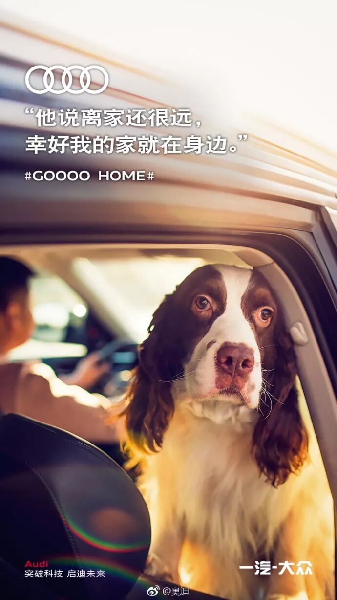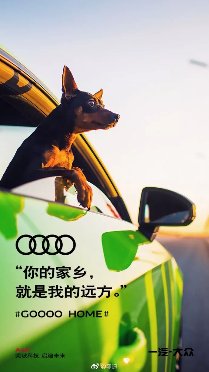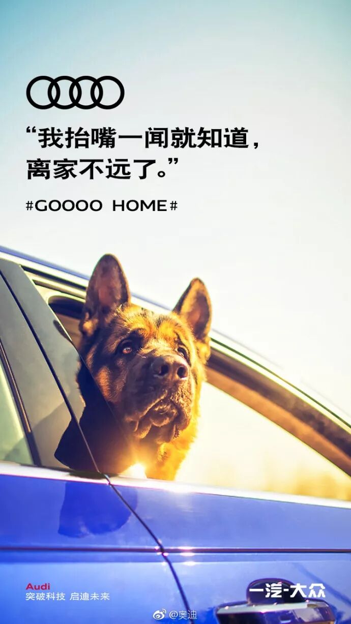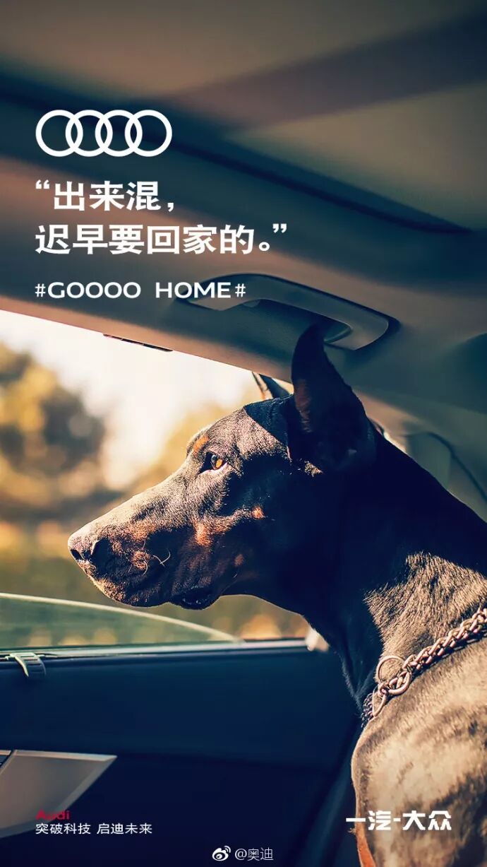 其一,GOOOO的长音表现出了回家的迫切,其二是GOOOO的四个圆圈代表着奥迪的四环,新年要带着奥迪回家。