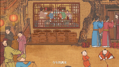 接着,视频用逐帧动画演绎的方式,将千年盛世画卷进行了立体化演绎。牛车队、驴运货、鱼游跃,最容易被忽略的水生动物、最难攻克的四足动物等跃然纸上;而在时间轴上,制作团队将原作逻辑与故事脚本相结合,串联起从郊区市井到亭台楼阁、从街头巷尾再到一庭一院,由远及近,层层叠进。