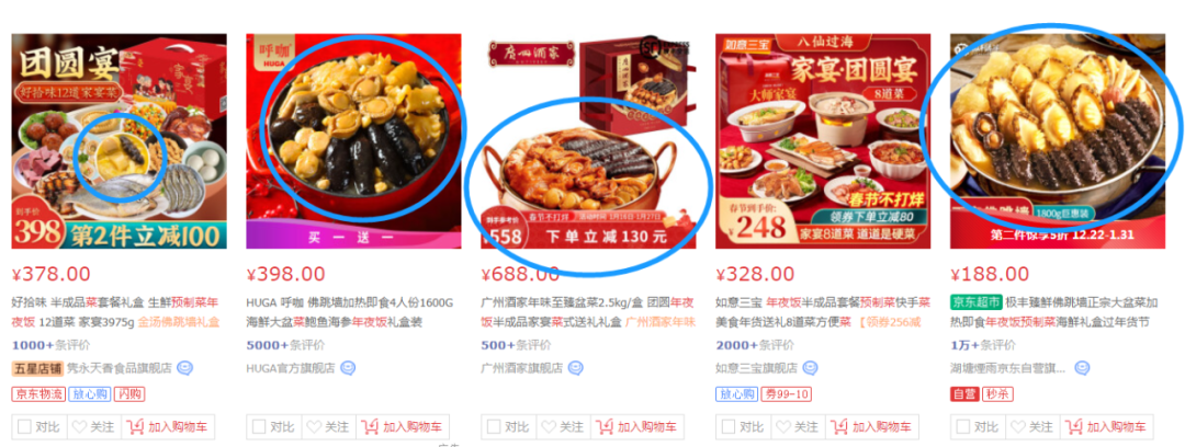 产品五花八门,但无一例外地都打上了“春节必备”“端上桌就是一桌完整的家宴”等宣传口号。
