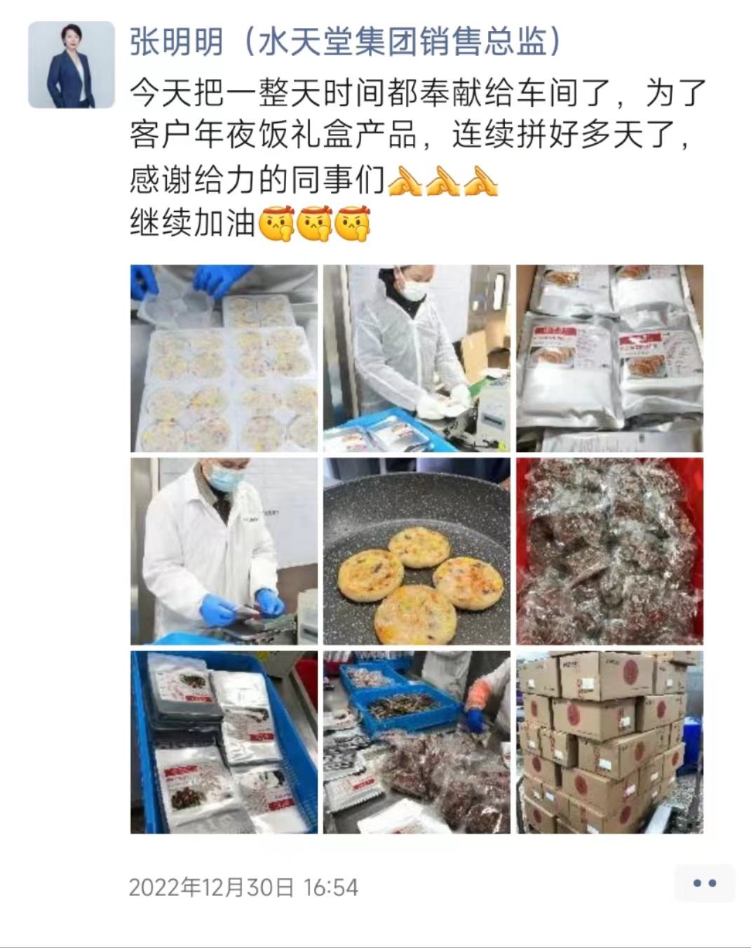 水天堂集团执行董事、销售总监张明明也表示,今年水天堂食品厂推出了8道菜和12道菜两款年夜饭礼盒,为知味观、丰收日、松鹤楼、蟹太太、淮扬菜集团等企业贴牌定制礼盒或单品。12月底大部分人“阳”过后,订单量开始激增,订单翻了几倍。