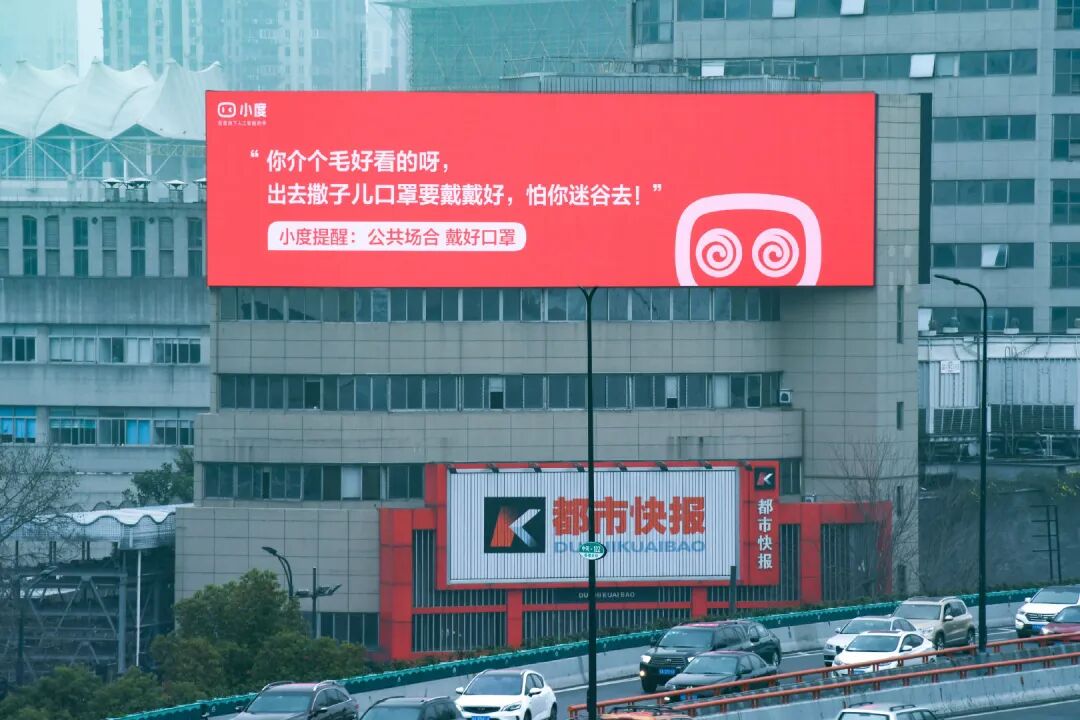 于是,小度不幸中招,竟然被主人要求“放屁”。更“可怕”的是,这件事被官方知道以后,竟然接了这个梗,在多个城市的地铁和户外投放了一系列小度智能音箱的「彩虹屁」广告。仔细一看,这一系列有味道的广告实则妥妥的「彩虹屁」,让人忍俊不禁:除了这三个,还有很多「彩虹屁」,我实在吹不下去了,哈哈哈!此外,小度还在户外大屏投放了方言版,对来往的人群吹起了方言版的彩虹屁。