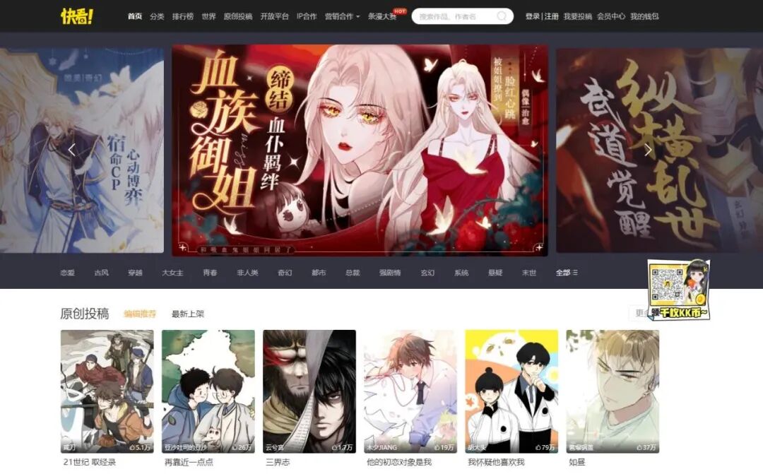 而相比B站,作为竞品的快看漫画和腾讯动漫各种的差异化竞争优势则比较突出的。比如,目前处在行业第一位置上的快看漫画,其主打内容为条漫,虽然业界对这一形式的漫画产品褒贬不一,但它的确更契合互联网时代碎片化的阅读情景,没有复杂的分镜能降低不少阅读门槛,更狭长的画面也适合在移动设备上滑动阅读,再加上快看漫画专攻的漫画题材为女性向,内容比较轻度,也适合使用条漫这一形式进行展现。