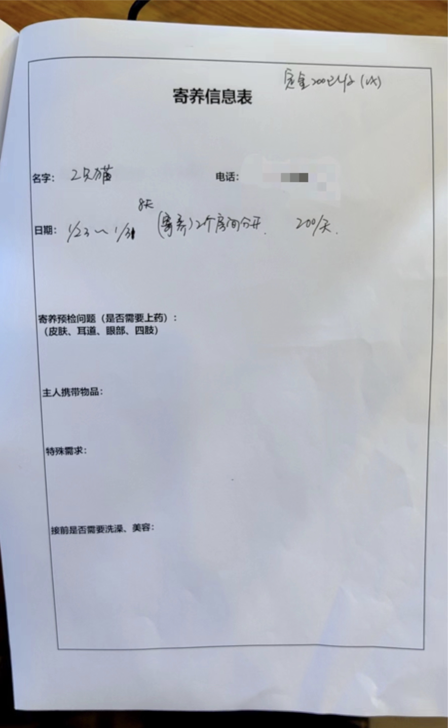 在上海经营宠物店的Andy告诉惊蛰研究所,宠物寄养不光要保障毛孩子们每天的吃喝,还包括清理粪便、清洁和消毒等一系列的服务内容。据Andy介绍,春节期间他和店里的工作人员每天都会准时到店,为宠物清理粪便,对猫舍、狗舍进行清洁和消毒,然后检查房间的温度、湿度以及宠物的状态,并将数据记录到对应的表格中。