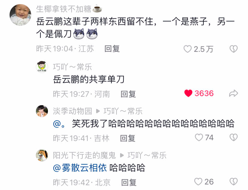 因为剧中岳云鹏的佩刀总被人偷去,人赠外号「共享单刀」。
