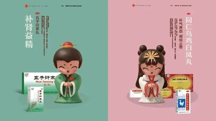比如北京同仁堂将旗下的五子衍宗丸和同仁乌鸡白凤丸打造成一对“CP”,并推出了“衍宗”和“白凤”两个IP形象。