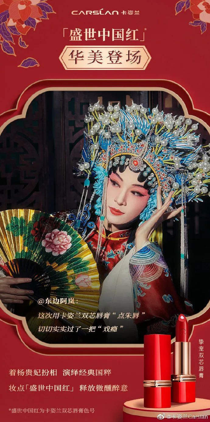 深耕传统文化,沉淀品牌资产,以具备强烈视觉冲击和有足够文化底蕴的中国红为切入点,共同探寻国粹的色彩之美,既让美妆与京剧文化之间形成双向关联,又彰显出品牌对中国传统文化的传承与致敬。