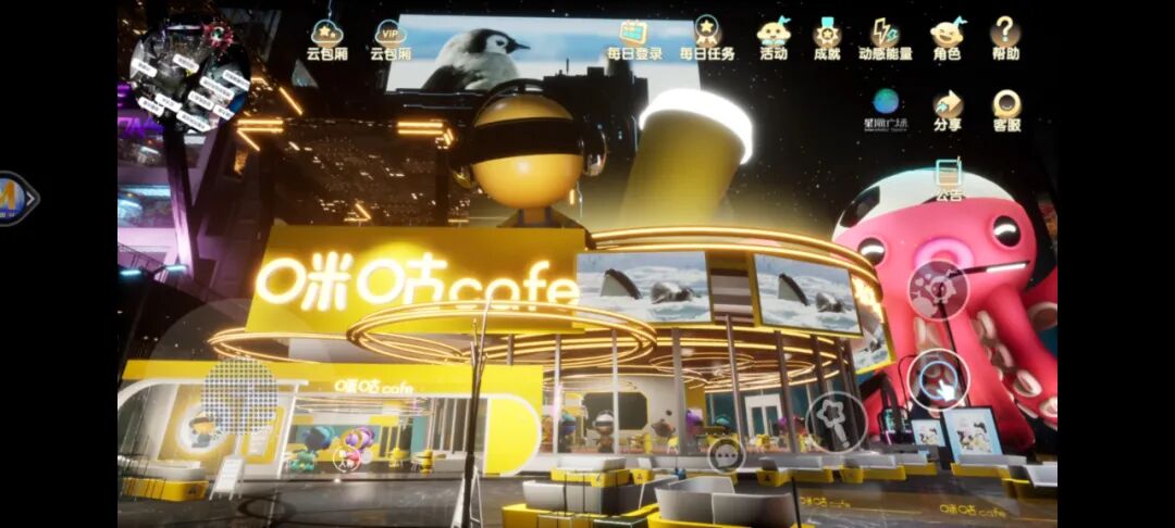 无独有偶,咪咕咖啡也在虚拟空间中开了家元宇宙咖啡馆。在中国移动推出的「动感地带星座·M」虚拟空间中,咪咕咖啡馆就位于主会场的右侧。