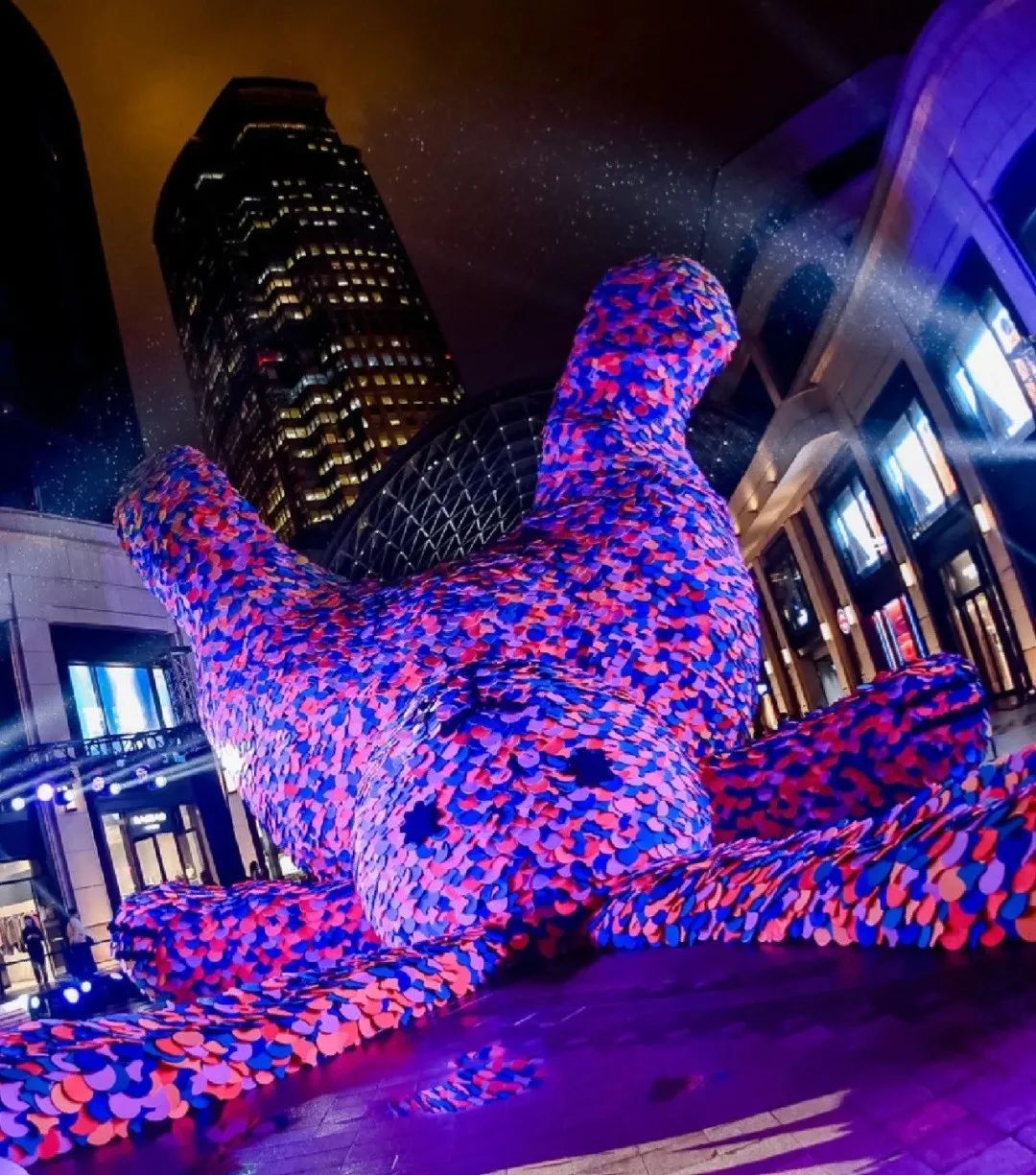 大型周边谁都能做,但最终是被夸爆还是吐槽,全靠设计师把握。一旦设计出现bug,艺术感没有,反倒整成阴间风,毕竟我们看过的阴间设计太多。最典型的就是LV和草间弥生的合作,我愿称之为贞子联名:前脚在日本东京街头“悬挂人头”,后脚在巴黎香榭丽舍“监视突袭”,整个人都要被吓没了。