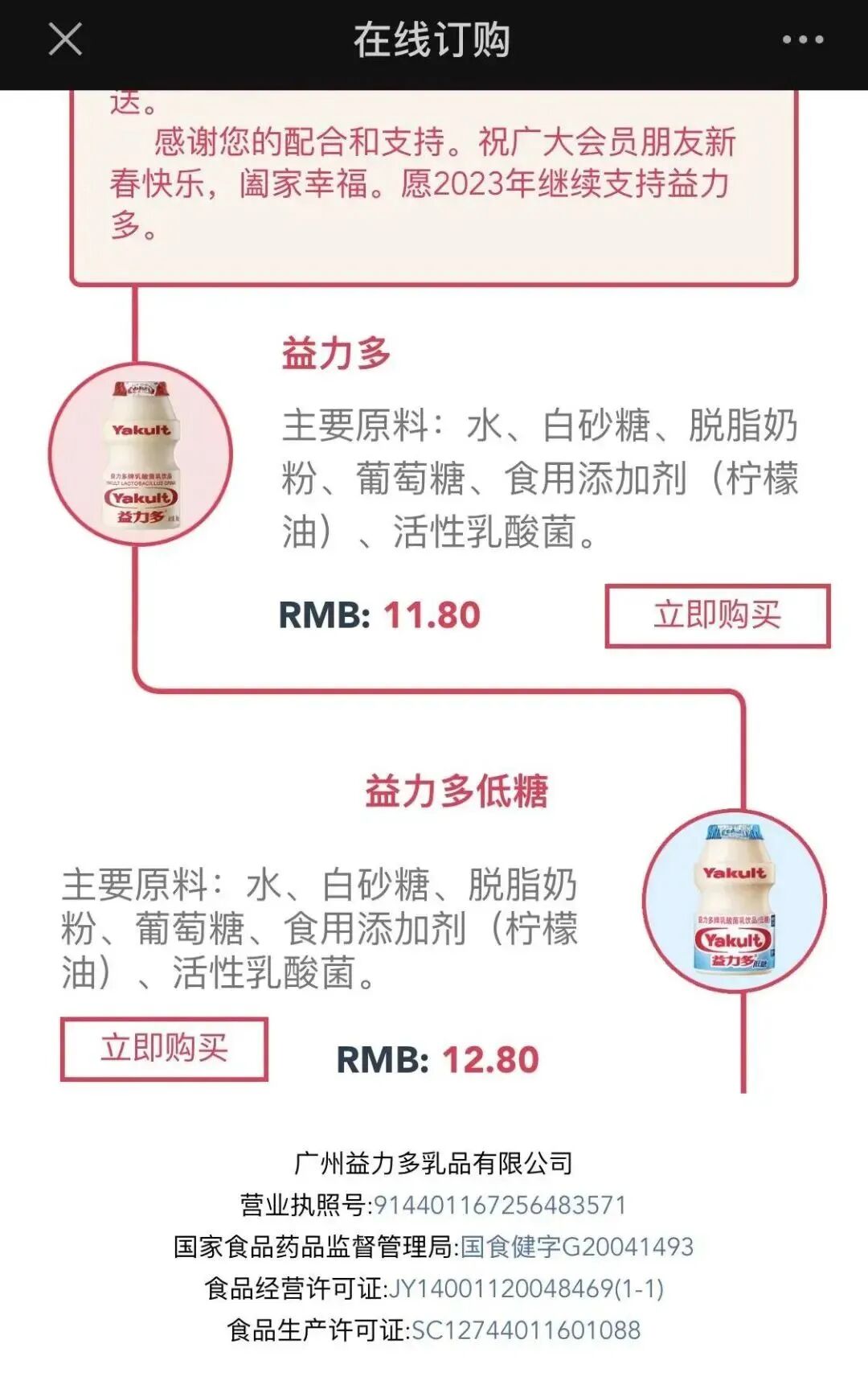 据家乐福、沃尔玛、盒马和大润发等零售渠道的数据显示,自今年1月以来,各种益生菌的销售量同比增长30%-35%,环比2022年12月更是大增了100%-200%。这其中,一直以来凭借精准营销打开中国市场的日本品牌养乐多(广州地区等称益力多等),更是难得地在消费市场迎来了久违的狂欢。不过热闹之下,现实境况遭遇的诸多尴尬,又似乎在表明养乐多远没看起来的那般乐观。据凯度消费者指数数据显示,2020年8月至2021年8月,养乐多在中国市场的销售额下降了16.2%;渗透率下降了3.4%,全年购物量下降了14.9%。不止于此,其赖以成功的营销也是屡屡“翻车”。比如此前因宣传“益生菌在新冠肺炎防治中有重要作用”等,其就曾被上海市监局罚了45万元……更为魔幻的是,在尚未走出下滑颓势的情况下,蜜汁自信的养乐多又在近日悄咪咪地开始了涨价!提起乳酸菌饮料,不少消费者的脑海里第一个蹦出的基本都是“一个红瓶闯天下”的养乐多。没错,凭借“一百亿个活的益力多菌帮肠道做运动”的广告营销,精准拿捏了年轻人的养生需求之后,养乐多便被推上了“健康单品”的高位,甚至还一度在消费市场活成了许多消费品牌的羡慕对象。数据显示,养乐多在华的销量,从2002年日销5.9万瓶到2016年的582.5万瓶,14年间其销量复合增速曾达到过39%。在2018年,养乐多的在华日销量更是达到了752.6万瓶。换句话说,就是仅在中国市场,每分钟可以卖掉5000+瓶!不过,在上演了“巅峰”时刻之后,养乐多的高走情况却似乎并没有持续太久。据广州养乐多中国业务总经理梅原纪幸向媒体介绍的数据,2021年养乐多在中国大陆市场的日均销量为698万瓶。另据日经中文网报道,2022年1-9月,养乐多在广州的日销售量为276万瓶,相比2021年同期,则减少了9%。然而就是在尚未走出衰颓的大背景下,养乐多却来了一个“匪夷所思”的操作——涨价。据日经中文网消息,养乐多本社自1月起提高了在中国全境销售的乳酸菌饮料“养乐多”和“养乐多低糖”2款商品的售价。其中,广州益力多乳品有限公司销售的地区及其他地区的涨价幅度不同,涨幅定为8.7%-14.3%。▶ 图源:“广州益力多”官方微信服务号订购页面截图具体来看,广州的柜台价格和配送上门的养乐多,每瓶的价格则是提高到了2.14元至2.36元;养乐多低糖的价格,则提高到了2.30元至2.56元。广州以外的地区,养乐多的柜台价格则定为2.34元至2.56元,配送上门的价格定为2.24元至2.56元。在消费端,养乐多的提价也已经落地。据媒体报道,2022年8月北京711便利店的养乐多活菌型乳酸菌(5联包)价格为11.7元,但现在却已经变成12.8元,涨了1.1元。在不涨价的情况下,养乐多的销量尚未出现了下滑,如今却逆向加价,然而这波操作真的能够挽回养乐多当下的“危机”?同样“不可思议”的,还有养乐多在营销上的种种操作。比如2021年9月,养乐多就曾因宣传益生菌可防治新冠被罚了45万元,甚至还一度因为此而登上了微博热搜。要知道,全球顶尖医学专家搞了两年多都没彻底攻克的世界级医学难题,一个卖饮料的竟明目张胆地吹牛吹到了法律禁地,不得不说,这个勇气哪怕是梁静茹也不敢给!又如在2022年临近年尾的一次国家海关进出口审查未准入境名单中,养乐多就赫然在列,理由是标签不合格。事实上,这也并不是养乐多第一次被查标签不合格。资料显示,仅是2022年,其就多次在未准入境名单中出现。综合2022年以来的数据,养乐多被禁止入境的产品更是达到了2.428万千克(24.28吨)左右。从配料表看,养乐多的主要成分为水,白砂糖,脱脂乳粉,葡萄糖(依次按含量顺序排名),其中奶基是乳品饮料的核心,但养乐多用的却是“脱脂奶粉”,且含量还较低。不仅如此,据悉脱脂乳粉一般要经过两次高温加工,然而在完成工序后,也会导致营养成分的严重流失。说到这里,实际上围绕这款被吹捧上天的“养乐多活菌型乳酸菌乳饮品”,争议更是由来已久。比如其主打的“100 亿活性乳酸菌”的卖点,在2018年时就有B站UP主“老爸测评”做过一项针对性的模拟实验。结果发现,每瓶乳酸菌饮料宣传的活菌数量,虽然没有太大问题,然而在进行模拟“消化”之后,活菌的数量却骤降至 9 万。若再经过胃酸、胆汁的“过滤”,最终能活着进入肠道的却几乎只剩下总量的0.02%了……不止于此,养乐多宣称的“肠道内的有益菌会随人体正常排泄而流失,所以需要每天补充活性益生菌,保持肠内菌群平衡”,也同样饱受非议。尤其是从其措辞上看,这显然是在暗示我们每个人都需要补充益生菌,不每天服用益生菌的话,就会对身体造成不利影响。但真实情况就是如此吗?答案也显然是否定的,因为益生菌存在我们每个人的体内,正常人也并不需要再额外补充太多益生菌。更为尴尬的还有,虽然这些功效能否发挥不太好说,然而养乐多的糖含量之高却似乎是个不争的事实。据“老爸测评”的数据显示,每100ml养乐多的含糖量竟多达15.3克,比可口可乐还要高出50%。即便是低糖版,含糖量也有4.4克。其实,不管是拿防治新冠做营销,还是疯狂暗示消费者应该多补充益生菌,这一系列的魔幻操作背后,恰恰也正是养乐多对国内市场日益下滑的现状的焦虑。而且,销量辉煌难续的同时,在资本层面,养乐多也同样遭受着巨大的挑战。2000年时,养乐多曾与法国食品巨头达能结盟,然而20年后,达能却以“合作未能产生期望的协同效应”为由,“清仓”了养