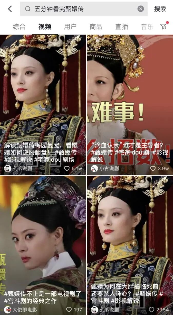 事实上,随着生活节奏的不断加快,人们似乎越来越没有耐心看完一部剧集或电影,反而在短视频平台上寻找各种故事梗概。什么“5分钟看完甄嬛传”,“10分钟速通红楼梦”之类的视频,比比皆是。