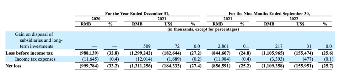 据招股书数据显示,2020年、2021年及2022年前三季度,新瑞鹏的净亏损分别为10亿元、13.11亿元以及11.09亿元,净亏损在总营收的占比分别为33.2%、27.4%以及25.7%,虽然逐年呈下降趋势,但仍难掩“增收不增利”的亏损状态,3年累计亏损超30亿元。