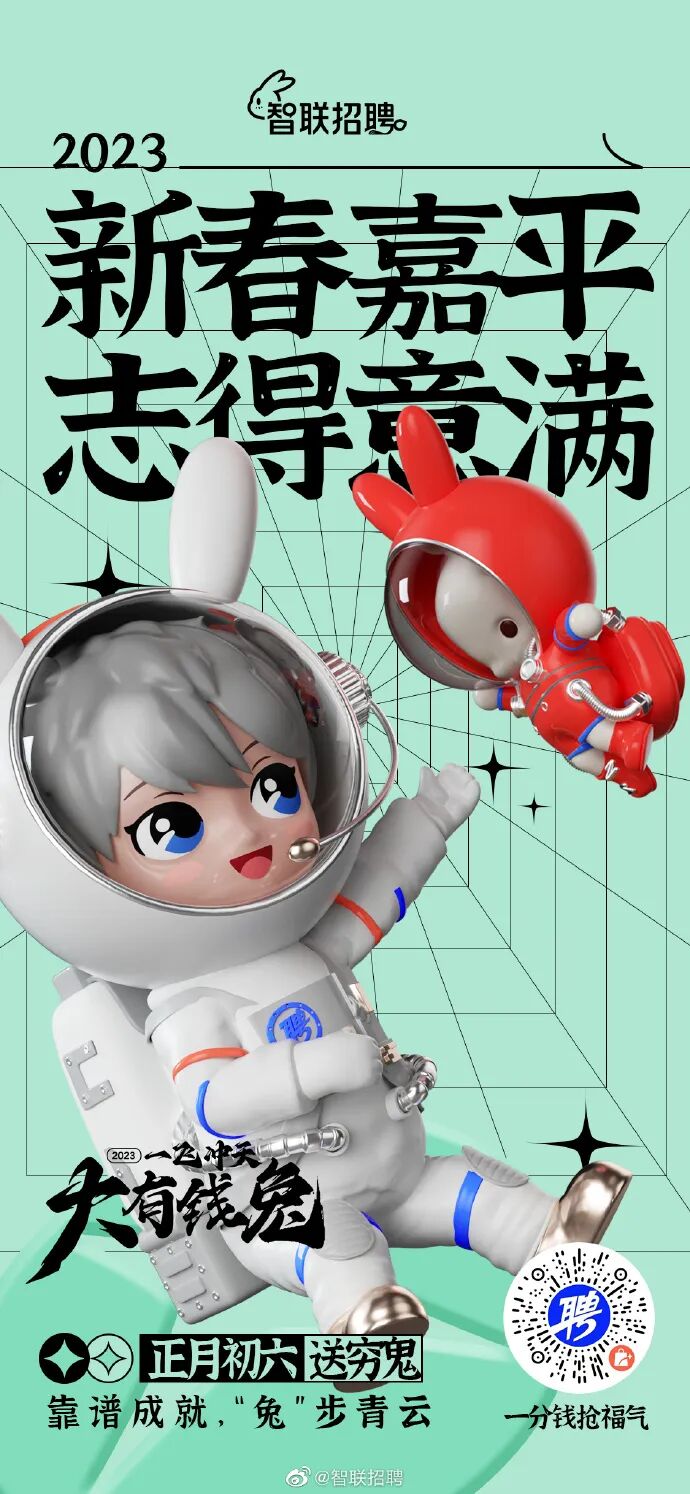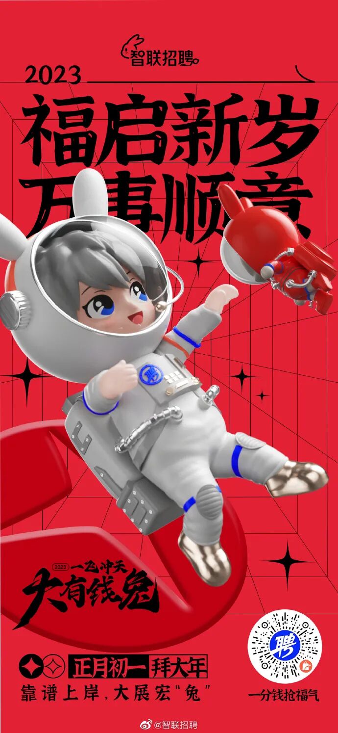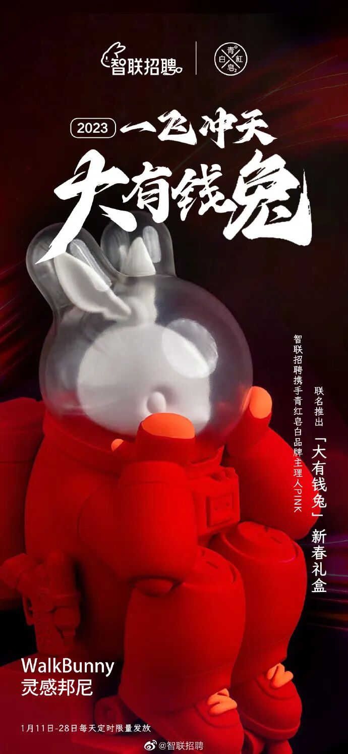 而春节礼物作为仪式感巅峰,成为此次活动的核心创意。智联招聘与中国航天基金会联合推出“大有钱兔”礼盒,谐音寓意“大有前途”。