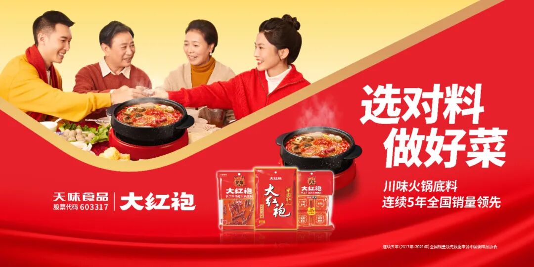 此次春节营销大节点中,大红袍凭借不俗的品牌洞察力、执行力和创新力,不仅在营销大战中脱颖而出,成功让年味回归,更让无数中国人感受到久违的红火年味,享受到生活不变的美好滋味。所谓年味,其实就是生活百味最不可或缺的那一味,是心灵深处最美好的生活期盼,也是记忆深处最简单的味觉陪伴。年味从一桌年夜饭开始,而年夜饭,从“选对料,做好菜”开始,这也是大红袍最核心的品牌价值品牌价值——用心做好每一款产品,回馈消费者的味蕾需求,坚持20余年用心陪伴,用美味创造美好生活,大红袍是真的了不起。