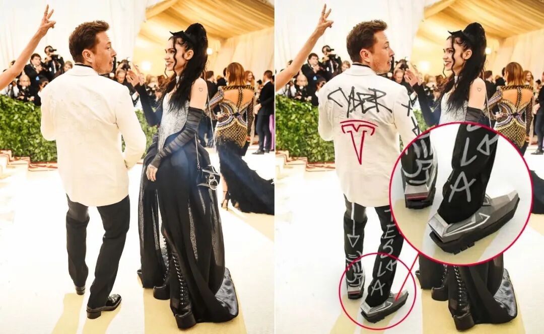 左为马斯克出席Met Gala典礼,右为加工过的马斯克