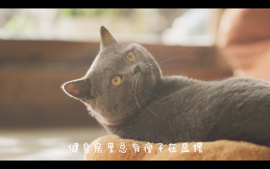 很喜欢这支小短片,它用一种含蓄的姿态去吐糟,把猫窝类比成健身房,没有一帧画面出现健身房,但句句都在说健身房。