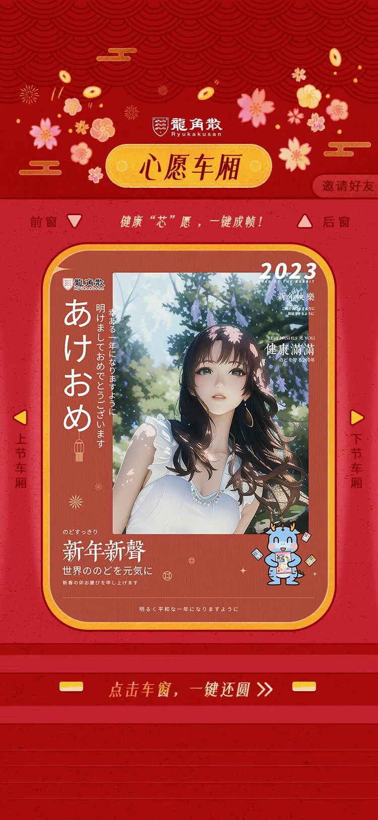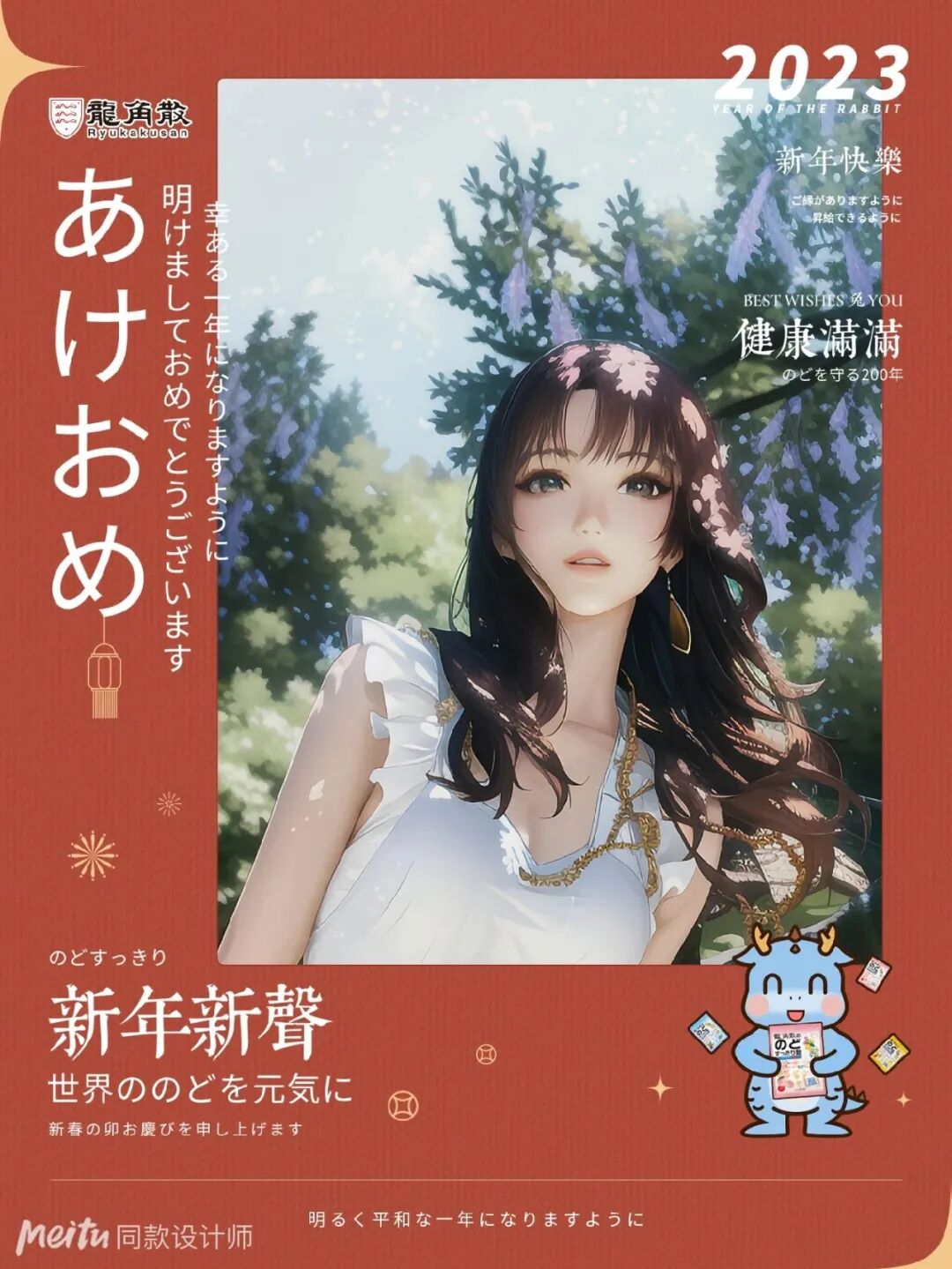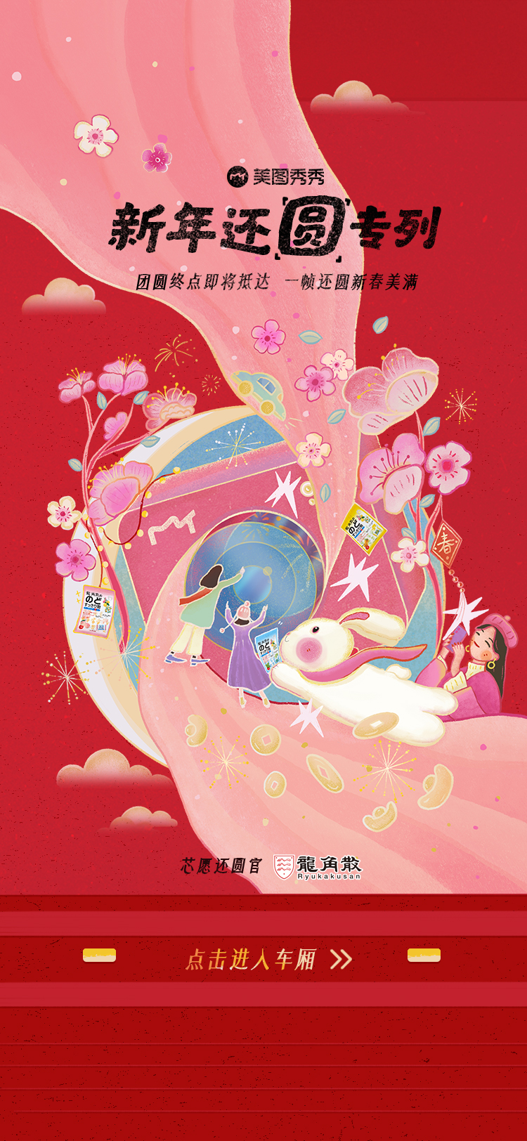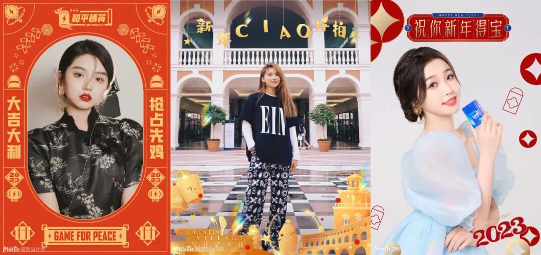 品牌触达用户的问题上,美图平台率先调换了思路:既然品牌精准走向用户难,那就以科技创新视觉影像,更多元更趣味的玩法让用户主动走向品牌。在「新年一帧还圆」主题活动中,美图推出了7款静态、动态及AI视觉技术配方,创新了品牌春节营销新玩法,也为用户带来沉浸式的新鲜交互感受。其中,春节大火的AI绘画在美图平台实现了首次商业化服务,让用户轻松实现AI变身。比如芯愿还圆官龙角散就将品牌元素融入美图平台原生科技,趣味AI效果+高人气模板上线即成爆款,为用户定制专属新愿大片,点燃健康新年味,成为人手必备的新年社交货币。龙角散也在此过程中软性植入品牌主张和产品卖点,实现精准消费人群转化的同时,延展品牌营销的高效触达和线性增长。基于春节全民记录晒照的天然心智,新春手游官和平精英也通过美图平台的影像创意定制品牌专属动态海报。年兽、纸鸢、锦鲤等游戏元素搭配新年氛围满满的红色边框,同时画面植入不同的园林元素,一起传递新局跃新年的新年祝愿。
