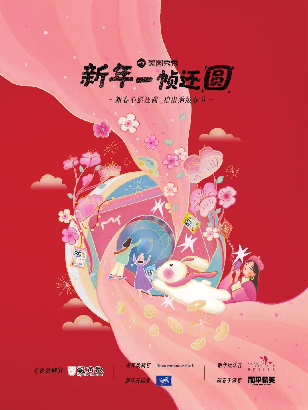 春节不仅仅是品牌们实现短期爆发的节点,作为一个自带情感底蕴的传统节日,自然也成为一个品牌与用户建立长效、深度沟通的契机。消费之外,人们亟需找到情绪释放的途径,更期待感受品牌带来的欢乐、鼓励与抚慰。在此过程,品牌认知度、忠诚度和场景、情感联想等品牌资产也必将积蓄、沉淀下来,以支持品牌长效发展。但如何沟通,才能回应期待,达成有效沉淀仍然是品牌们在CNY营销中的一大难题。面对种种难题,品牌们愈发迫切地需要一个大流量、强交互、深渗透的全方位营销解法。美图式创意便成为绕不过去的新选择,以科技赋能影像玩法,以更多元更趣味的玩法满足用户“情感沟通+节假仪式感+社交需求”三重叠加需求,也让品牌在高效触达用户的同时,为品牌带来更具特色和传播性的营销体验,实现心智渗透和降本增效。实际上,已经有品牌行动起来了。今年春节期间,芯愿还圆官龙角散就借助美图平台的“精准流量+场景交互+社交造势”实现了2.4亿的声量曝光和“健康新年糖,就磕龙角散”的心智占领;美年焕新官A&F也在美图平台上线了两大跨年节点的新年大片,双场景沟通强化“跳起来,过新年”的品牌主张,营造满级春节氛围。值得一提的是,今年春节入驻美图平台的品牌数量创历年美图CNY项目新高,新春手游官和平精英、新年开运官Tempo、新年玩乐官佛罗伦萨小镇等一众品牌纷纷借助美图的影像黑科技,在丰富的过年场景中与用户建立深入有效沟通,并通过定制化的创意内容和多元趣味玩法狠狠圈了一波粉,还实现了全链路提速增量。