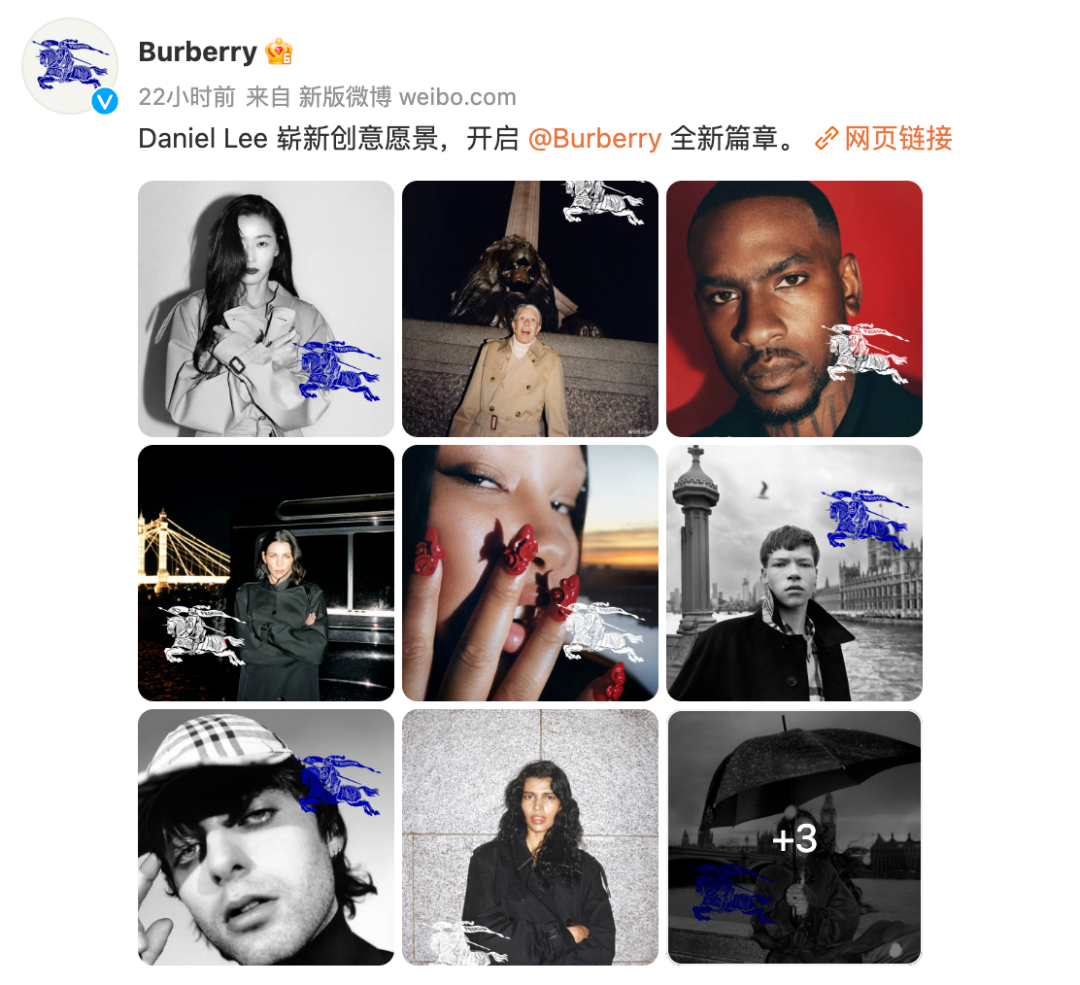 目前Burberry的所有平台都换上了新的蓝色战马logo。