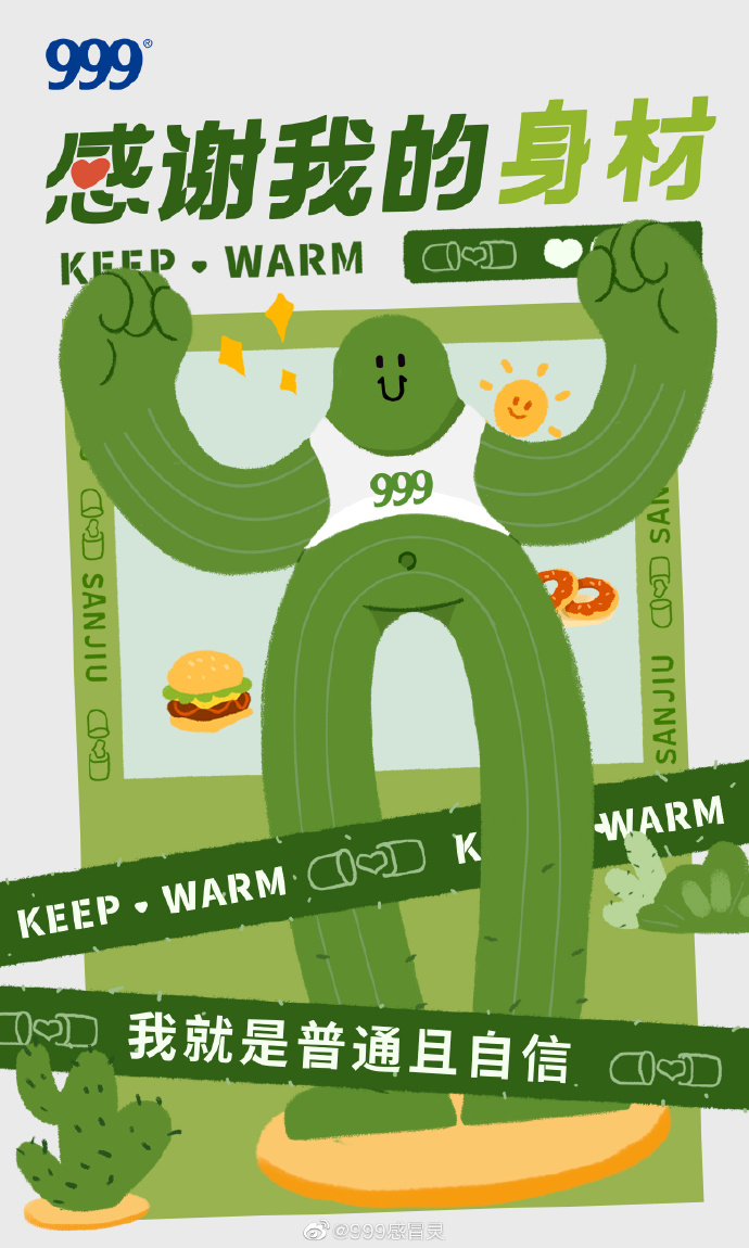 看得出来,999感冒灵在近些年来,一直不断通过大胆的设计来赋予品牌年轻潮流的形象。就好比前面说到的“三舅”,打造了一个符合品牌属性的治愈且独特的IP形象,和观众达到有效的互动。可以说是一次成功的设计了