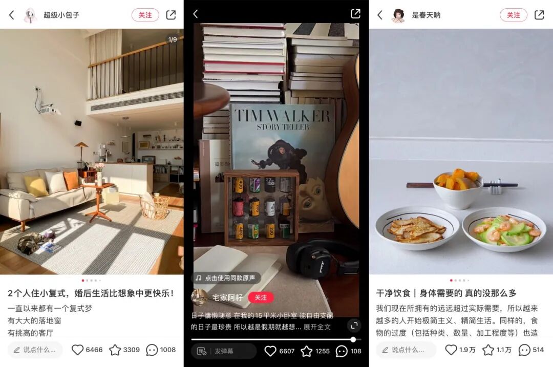 在平台用户产出的大量UGC内容中,也不乏一些得到大家好评的优质内容。比如@超级小包子 分享了自己用心打造的兼具温馨氛围和舒适性家居布置,让其他用户仿佛看到了幻想中家的样子;@宅家阿籽 用一段记录生活的vlog,鼓励大家从对生活的热爱里得到快乐和力量;@是春天呐 分享的“健康一人食”,则成为了不少用户的健康生活指南。