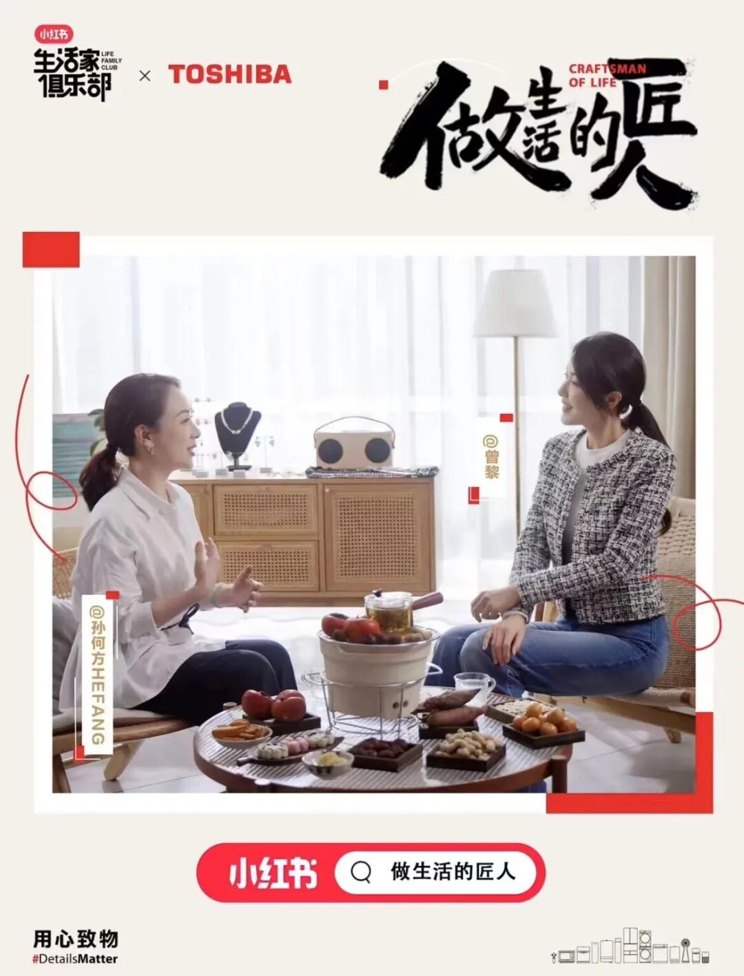 在本次活动中,东芝延续其用心致物的品牌理念,聚焦过去147年来沉淀的匠心精神,结合小红书以具体生活需求为内容种草出发点的传播语境,衍生出了符合平台用户视角的“匠人生活”理念。