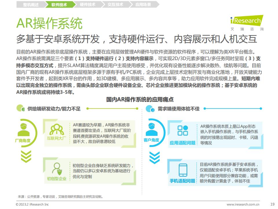 “虚”软件技术:AR操作系统多基于安卓研发,支持硬件运行、内容展示和人机交互
