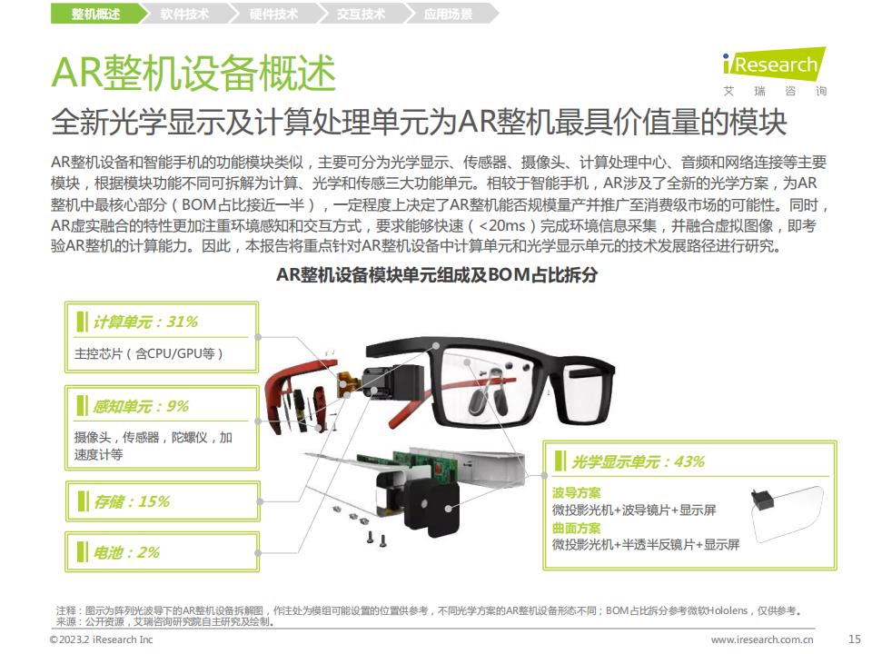 技术体系:AR整机根据模块功能不同可拆解为计算、光学和传感三大功能单元