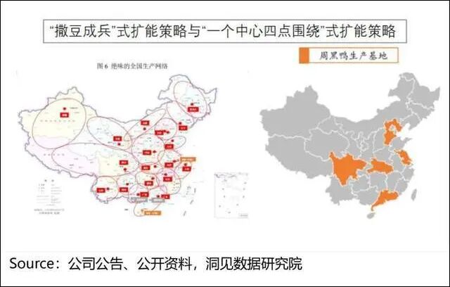 再次,周黑鸭采用MAP气调包装延长保鲜,仅在湖北、河北、广东等地建立了现代化工厂配送,在疫情期间增加了采购、仓储和运输成本。反观绝味在全国建立了20多个生产基地,对于原材料的采购及加工更具成本优势,这也是周黑鸭迟迟走不出去的原因之一。