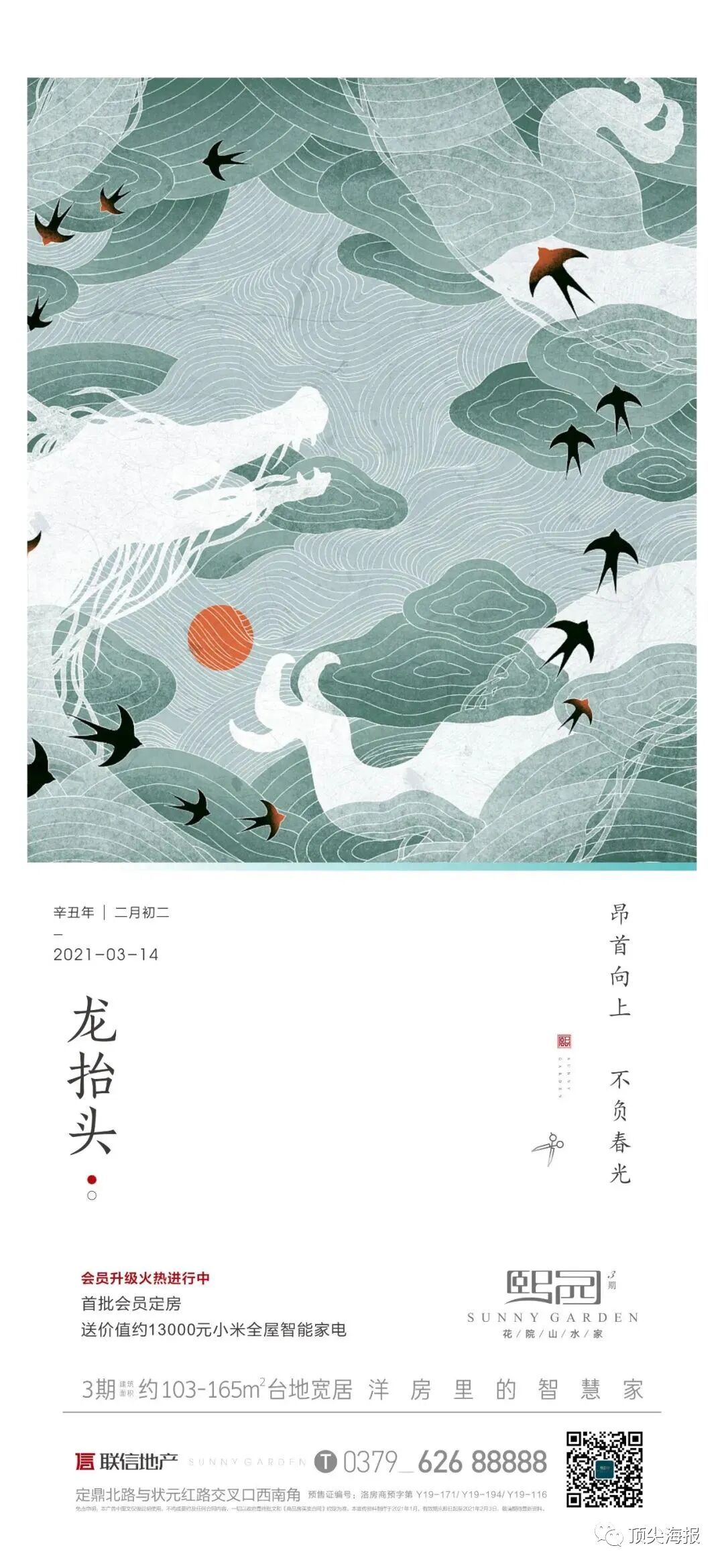 每年农历二月初二是龙抬头的日子,是中国民间的一个传统节日,“龙抬头”标示着阳气生发,雨水增多,万物生机盎然,春耕由此开始。