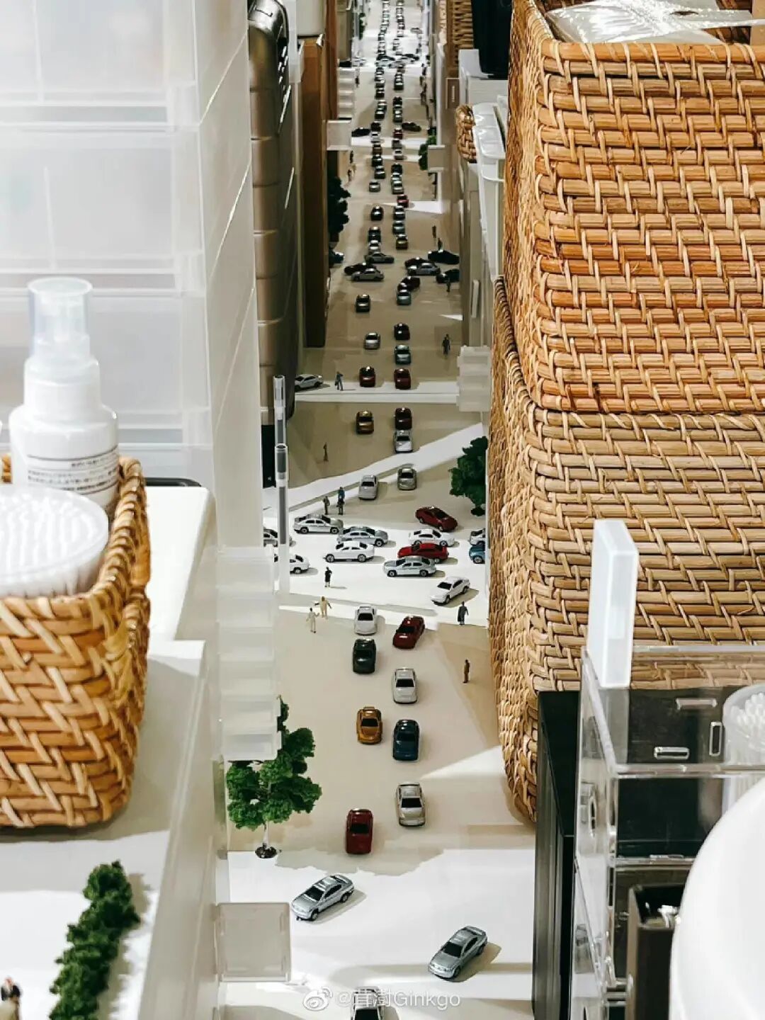 无印良品产品+微型人偶=脑洞故事,田中达也以日常风景为原型的有趣作品,每一个细节都经得起放大和推敲,每一个场景都充满了奇幻的想象力。除了上面这些,田中达也还复刻了歌舞伎剧场、老字号点心店等银座街道人山人海的景象,带领大家以独特的视角欣赏银座的风景。