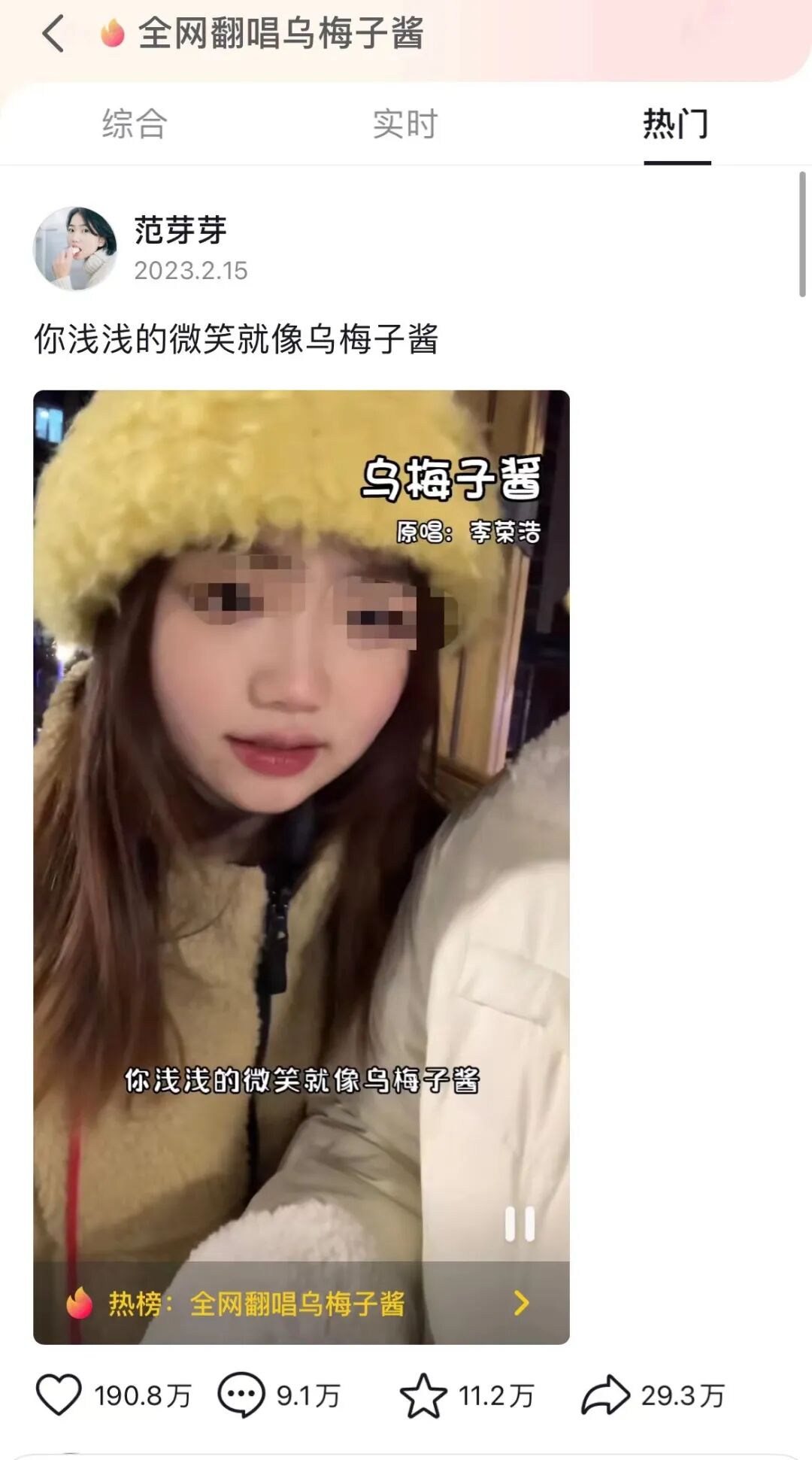 深究《乌梅子酱》背后的爆火传播现象,KOL的二次创作还是最佳推手,比如坐拥百万粉丝的人气音乐博主范芽芽、Bell玲惠,甚至还有不少圈内明星比如刘也、曹杨等接力翻唱。