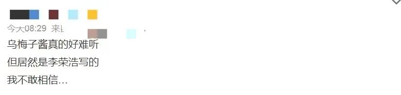 这话一出,瞬间点爆舆论,粉丝们怎么忍得了,表示不能接受他对李荣浩和《乌梅子酱》的无理攻击和侮辱,纷纷为他发声。