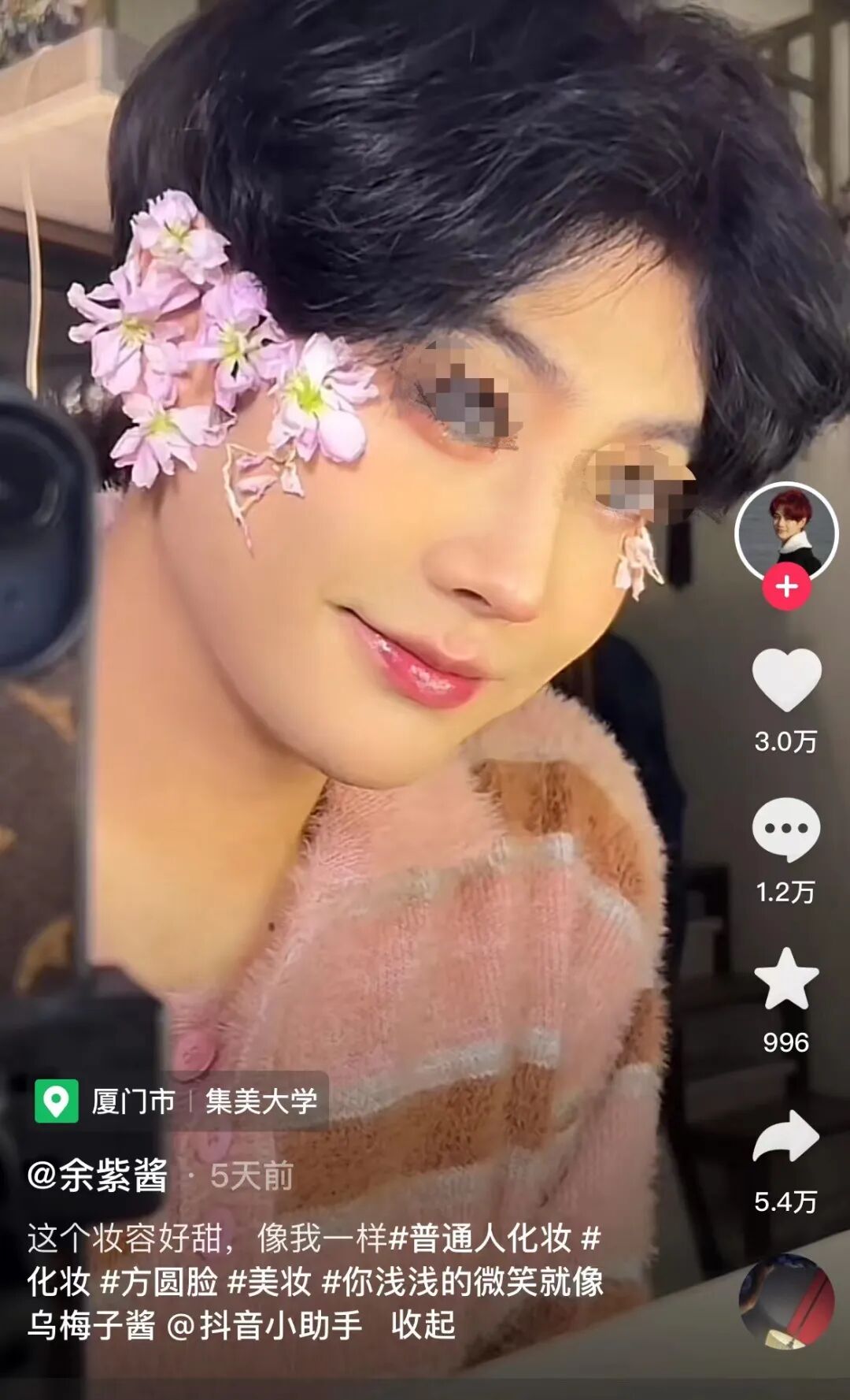 除此之外,这波热潮已经发展到了“寻找乌梅子酱女孩”、“乌梅子酱妆”等方面,不少美妆博主借势营销,带着#乌梅子酱女孩#的Tag,化着甜美的妆容。粉丝数只有一万多的男博主“余紫酱”的妆容,更是起到意想不到的效果,收获空前的评论和点赞量,很多女生直呼:“这个女人给你来当吧,实在太好看了”。