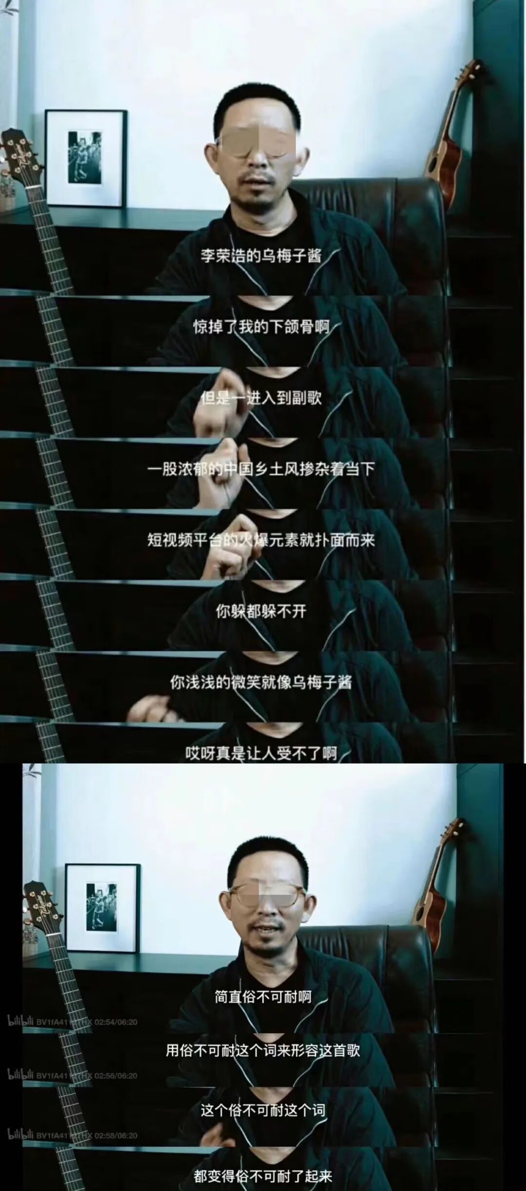 凭骂人出名的乐评人丁太升犀利点评,听完李荣浩的《乌梅子酱》后惊掉了自己的下颌骨,只能用“俗不可耐”四个字来形容,是写给“小镇青年、初中毕业的文艺骨干、打工者”的投机作品,跟早期作品没法相比。
