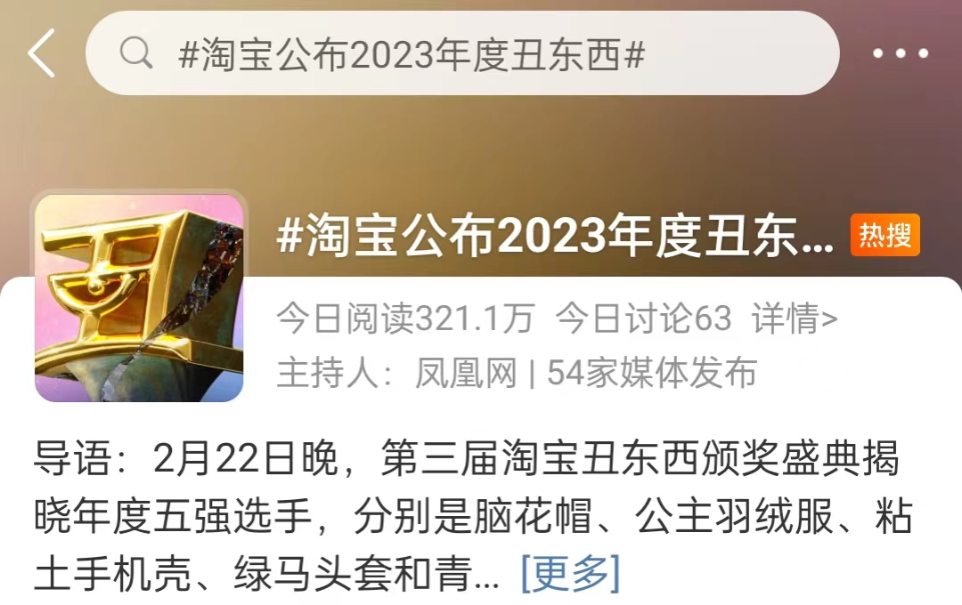 每年的淘宝丑东西大赛都赚足了关注度,号称颁奖界泥石流的第三届淘宝丑东西颁奖盛典近日落下帷幕,并登上热搜,引发网友广泛讨论。