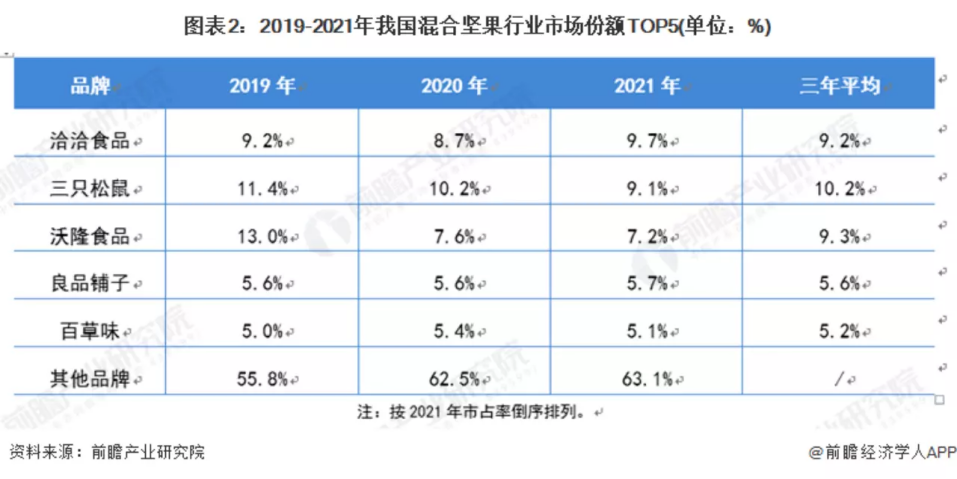 沃隆食品混合坚果的市场份额从2019年的13%降至2021年的7.2%,市占率相当于直接砍了一半。