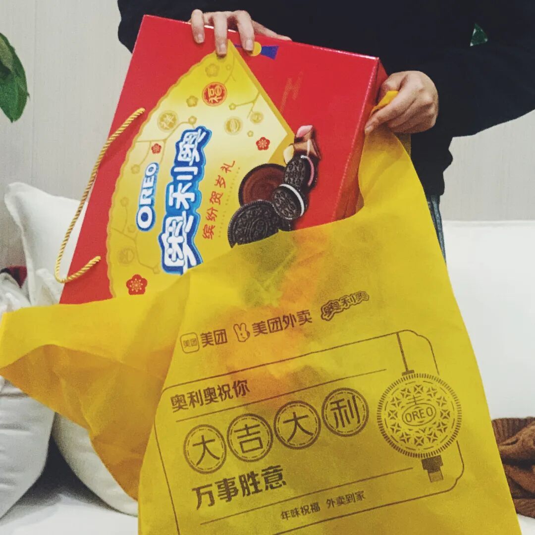在外卖侧,奥利奥锁定北上广,根据不同地域文化定制方言版年味外卖袋,配合上线三大城市的定向外卖开屏广告。此次北上广城市一共投放60万份外卖袋,促使活动精准渗透闪购消费者,让60万在闪购购物的用户都可以被奥利奥精准触达,提高了营销的效率。