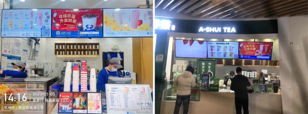 同时,奥利奥联合奈雪的茶、茶百道、阿水大杯茶等茶饮店展开多个城市合作,撬动餐饮渠道场景:依托于线下定制贴杯套、海报KV等氛围感物料露出,利用终端对消费者展开全方位多维度的视觉拦截,在茶饮场景中激发消费者对于奥利奥产品的消费兴趣。