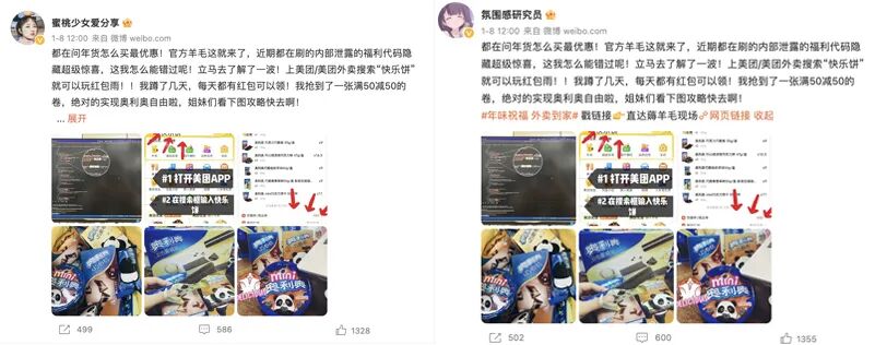 与此同时,奥利奥站外发起“快乐饼”的话题造势,在闪购侧红包雨互动承接,基于“公域造势+私域承接”的流量组合策略,设计固定时间段发放优惠券的互动做好日常蓄水,调动用户固定时间段的参与感,为站内活动引流并进一步刺激消费。在春节长营销的周期中,这有效保证了奥利奥和美团双方较高的热度和曝光量,避免春节营销沦为走过场,流量稍纵即逝。