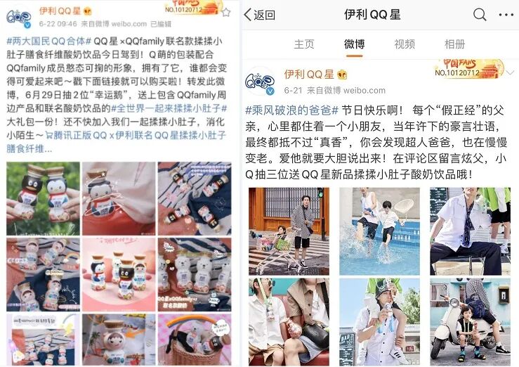 伊利QQ星推出#乘风破浪的爸爸#话题,独特地通过炫父视角来设计互动,留言即有机会获得QQ星新品揉揉小肚子酸奶饮品。
