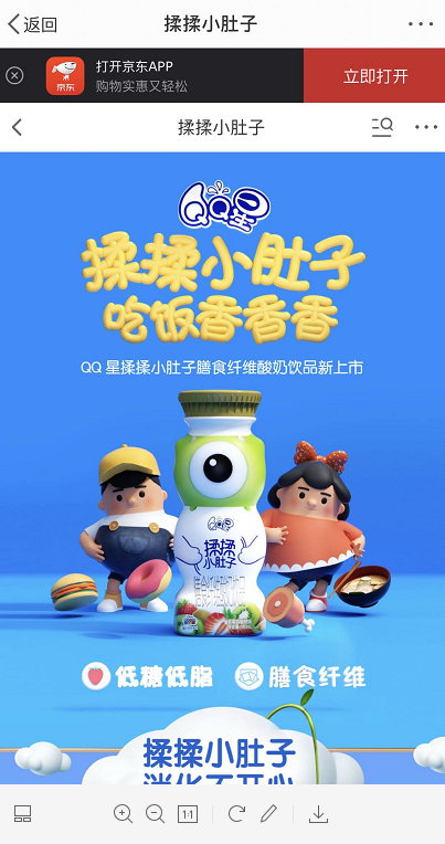 伊利QQ和QQfamily合体,QQfamily家族上了伊利QQ瓶身,不仅形象上更加萌趣,而且构建了新的消费场景,从而撬动QQ消费群体层,扩大伊利QQ的原有消费群圈层。