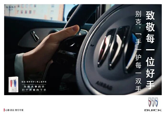 侧面衬托守护“双手”的必要性,再次呼应别克为大事的手打下手的广告主旨,落点品牌陪伴的角色定位,进一步强化品牌价值主张。